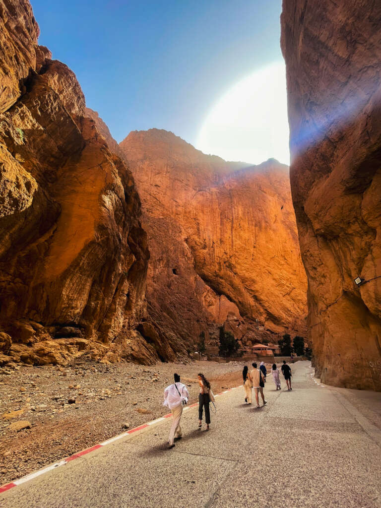 Departure toward Tinghir and the Todra Gorges. Time allocated to walk between canyon walls.